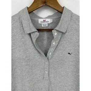 Vineyard Vines Womens Gray Short Sleeve Polo Shirt Size M Cotton Blend