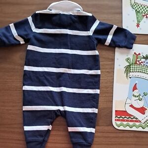 Iconic Ralp Lauren! Navy and white stripes romper. Size 3 Months. *All baby clothes are either washed but not worn or worn once*