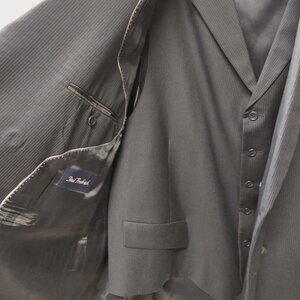 PAUL FREDRICK BLAZER & VEST. DARK BLUE PINSTRIPE. DOUBLE BREASTED. DOUBLE VENT.