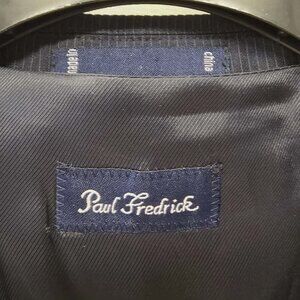 PAUL FREDRICK BLAZER & VEST. DARK BLUE PINSTRIPE. DOUBLE BREASTED. DOUBLE VENT. 4 BUTTON SLEEVES. 48R