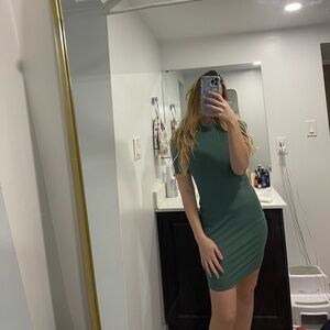 Lululemon all aligned ribbed short sleeve dress size 6 medium forest green