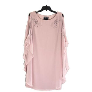 NWT 90s Frank Lyman Full Fairy Chiffon Overlay Wedding Guest Dress Rhinestones Blush Sonrojo Women’s 14