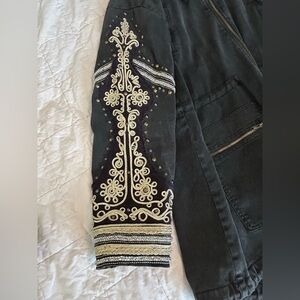 Free People Golden Quills Embellished Military Jacket