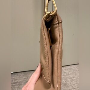 Chic tan leather crossbody from Quince. Features a stylish gold zipper. Ideal for versatile wear. Minimal signs of wear, great condition. Magnetic closure.