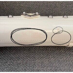 Please note: there are some faint reddish discoloring on the white leather flap. See last 2 pics