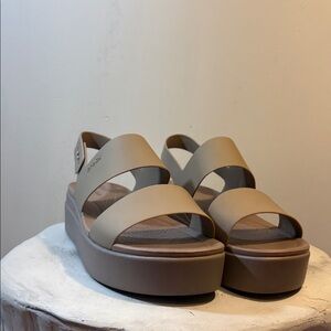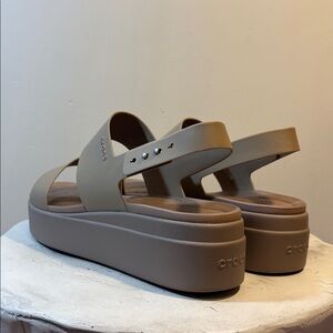 Latte/Mushroom Taupe Brown Crocs Women's Brooklyn Low Wedge Platform Sandals, 11