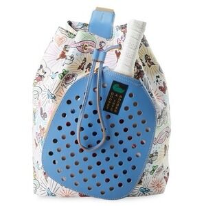 You'll be an ace on and off the pickleball court with this Disney Sketch Dooney & Bourke pickleball racket sling bag. The allover print features Mickey, Minnie, Tinker Bell and others, plus colorful icons including Fantasyland Castle, Mickey balloons, and Mickey ear hats that put you in a winning state of mind. So very playful and stylish, with leather finishings and other signature Dooney & Bourke elements, it'll make you feel like a champion even before you step onto the court. Please note, racket is not included.