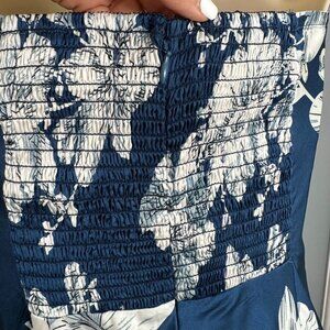 Petal & Pup Strapless Satin Floral Maxi Dress Blue Teal M