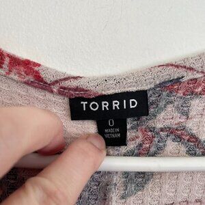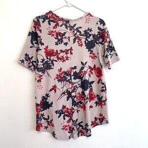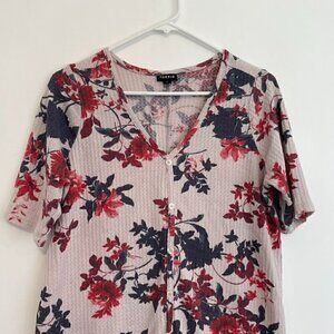 TORRID 0 Plus Size Favorite Tunic Waffle V-Neck Faux Button Front Hi-Lo Floral L