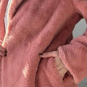 Chic and warm teddy jacket. Soft texture and elegant design. Ideal for layering. General wear around inside collar & sleeves