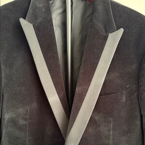 Elevate your style with this classic black men's blazer. Velvet cotton tuxedo jacket. Dress it up for holiday events or casual with dark denim. Size 46 regular.