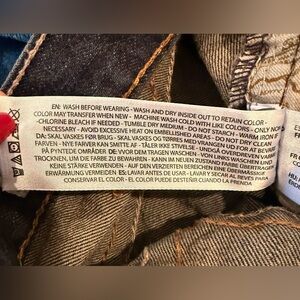 • Dark wash denim with natural fading