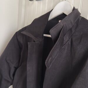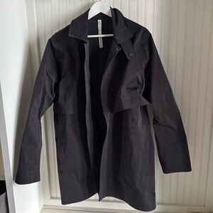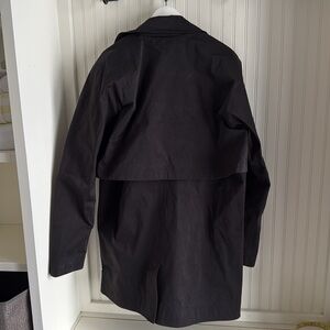 Sleek black waterproof utility jacket. High collar design. Perfect for versatile wear.