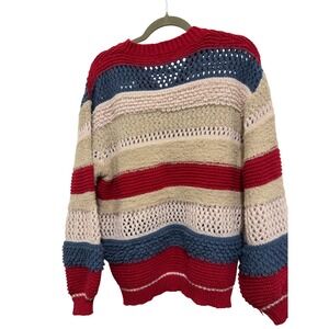 POL Striped V Neck Mixed Knit Sweater Beige Red Blue Women's Size M