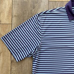 Peter Millar Summer Comfort Golf Polo Size L Blue Purple Stripe Bearpath Logo