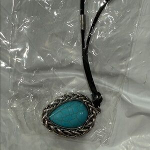 Enhance your style with this elegant turquoise pendant necklace. The striking blue stone is beautifully set in a silver frame, perfect for any occasion.