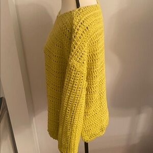 Excellent condition size small lime green woven sweater by Anthropologie. Slit on sides at bottom. 23 inches long and 21 inches pit to pit lying flat .