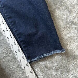 Eileen Fisher Jeans Size 4 Dark Wash Raw Hem Mid Rise Stretch Straight Slim