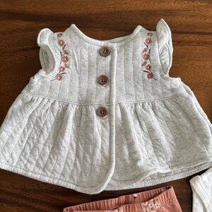 Carter’s Baby Embroidered Vest, White Bodysuit, Floral Leggings Set size 3M