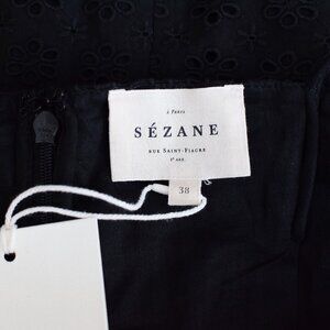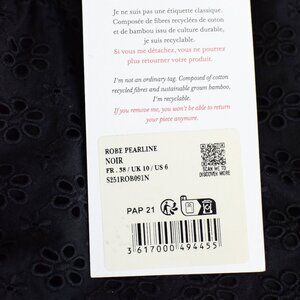 NWT Sezane Pearline Dress Black Eyelet Midi Tie Front Size 6