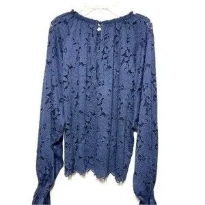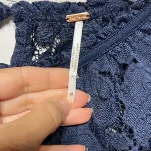 Free People Olivia Lace Tee in Navy M NWT