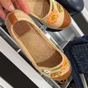 Tory Burch Floral Embroidered Espadrilles - Tan and Brown