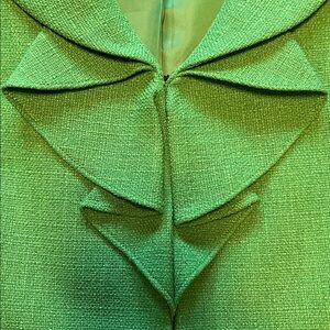 Chic green blazer with elegant ruffle detail. Perfect for professional or church wear.