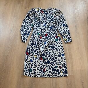 Vintage Cream and Navy Colorful Leopard Print Dress Size Small