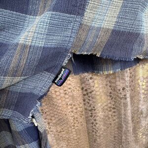 Patagonia Blue Upcycled Women's Tie Front Button Down Flannel Plaid Top Medium