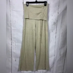 NWOT Forever 21 Avocado Green Tan Wide Leg Ruched Drawstring Fold over Pants