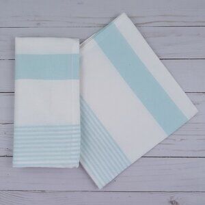 Fabric Dinner Napkins Striped Teal White 18x18 Set of 4