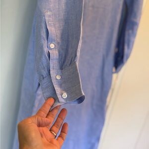 J.Crew Bungalow Maxi Popover Dress in French Blue Linen