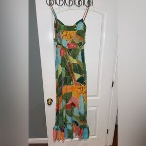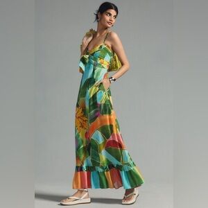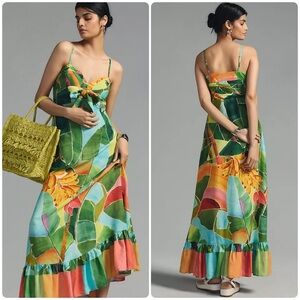 New! Farm Rio x Anthropologie Printed Tie-Front Ruffle Maxi Dress 🌴☀️ Small