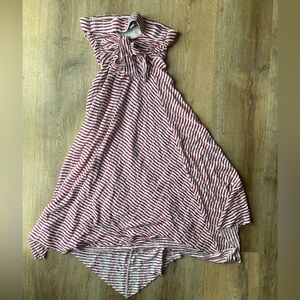 Maeve Anthropologie Red White Striped Strapless Dress S Handkerchief Hem Boho