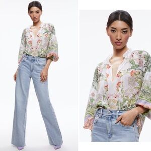New! Alice + Olivia Julius Floral Blouson Sleeve Tie Front Top 🌻 XS