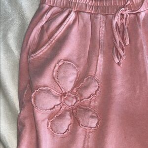 Easel Pink Wide-Leg Pants with Floral Embroidery