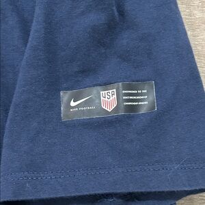 Stylish Nike navy blue t-shirt. Featuring the USA crest and swoosh logo. This shirt is not only comfortable but also sporty. This shirt is a size XS in good condition with no staining or tears