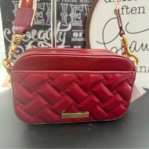 Kurt Geiger Quilted Leather Camera Bag w/ Embellished Strap – Red | NWT