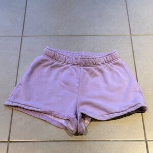 Soft lavender shorts with elastic waistband. Ideal for lounging. Slight wear on inside fleece.
