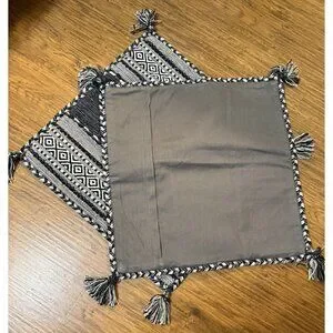 2 SURYA Pillow Covers 23x23 Black Gray Charcoal White Knobby Tassels Floor BOHO