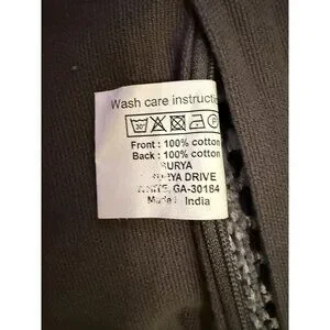 Machine Washable - Line Dry - Low Temp Iron if needed.
