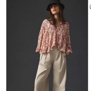 By Anthropologie Tie-Front Peasant Blouse Small