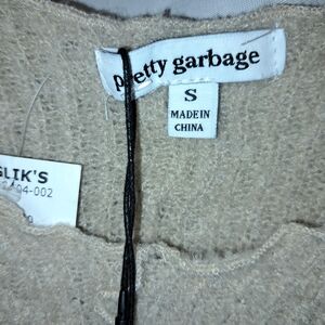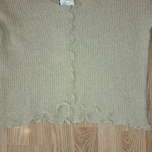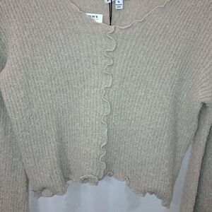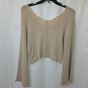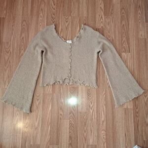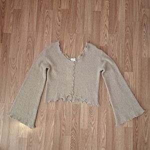 NWT Sz S Babydoll, Bell Sleeves Scalloped Edge Cropped Beige Sweater Boho
