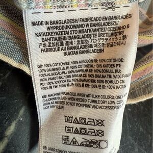 Vans casual blue button-down short sleeve shirt with pastel multicolor stripes. Soft 100% cotton fabric. See photos for measurements. Perfect for your next tropical getaway.