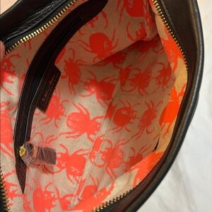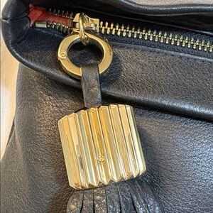 India Hicks Carmen BLACK Soft Supple Leather Clutch with matching Large Agra Tassel, Preowned in excellent condition. Hardly used and in like new appearance, dust bag is included. Approx. Size unfolded 12”w x 9”h. The leather is very soft and smooth, sometimes referred to as “buttery”. The appearance of this is a natural weathered and slouchy style. Gold tone hardware. Top zip opening that folds over and closes magnetically. The large Agra tassel is removable so you can replace it with other color tassels or charms, and can be used on other style leather goods. Interior has the “Good Luck Beetle” signature cotton/linen lining with one zip compartment and two open organizer pockets.