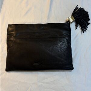 India Hicks Black Supple Leather Clutch with Tassel NWOT