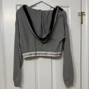 Tommy Hilfiger Gray and Red V-Neck Cropped Sweatshirt