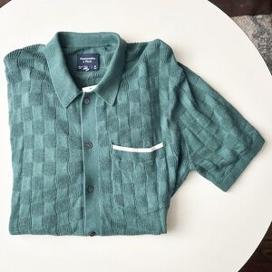 A&F Textural Button-Through Sweater Polo Shirt Men’s Size Medium Green New Relaxed Fit