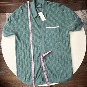 A&F Textural Button-Through Sweater Polo Shirt Size Medium Green New Relaxed Fit