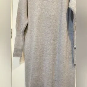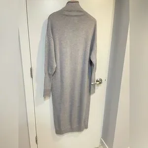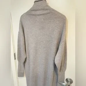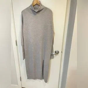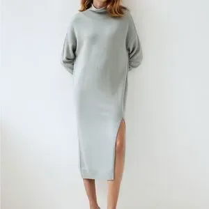 Elegant gray midi dress. Soft fabric. Turtleneck design. Perfect for any occasion.